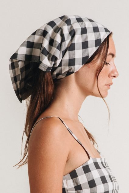 Mini dress with adjustable straps made from plaid seersucker fabric.