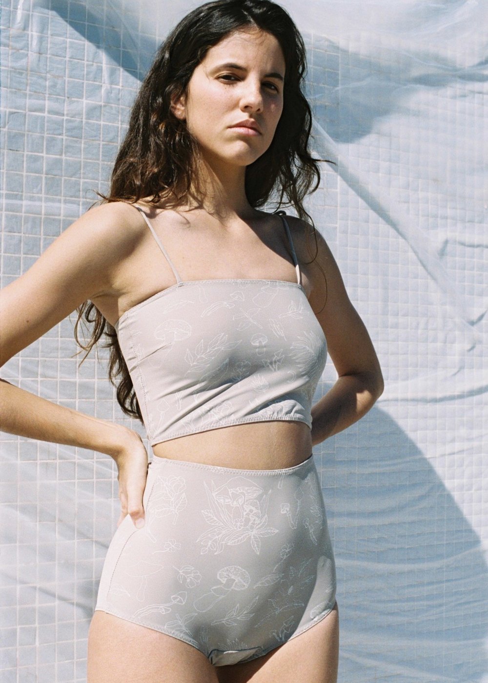 Classic high waisted bottoms. Hand printed with our El Bosque pattern by Carmen Seijas. Due to the handmade nature of this block print, there may be slight variations in the pattern.