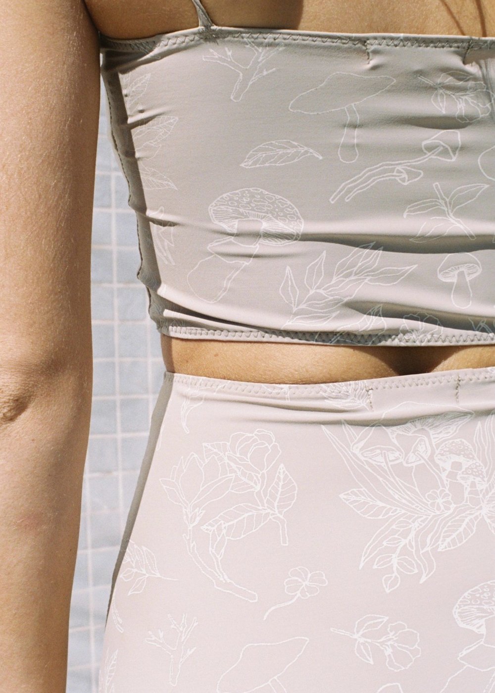 Strait swimwear top with two darts and tie straps. Hand printed with our El Bosque pattern by Carmen Seijas. Due to the handmade nature of this block print, there may be slight variations in the pattern.