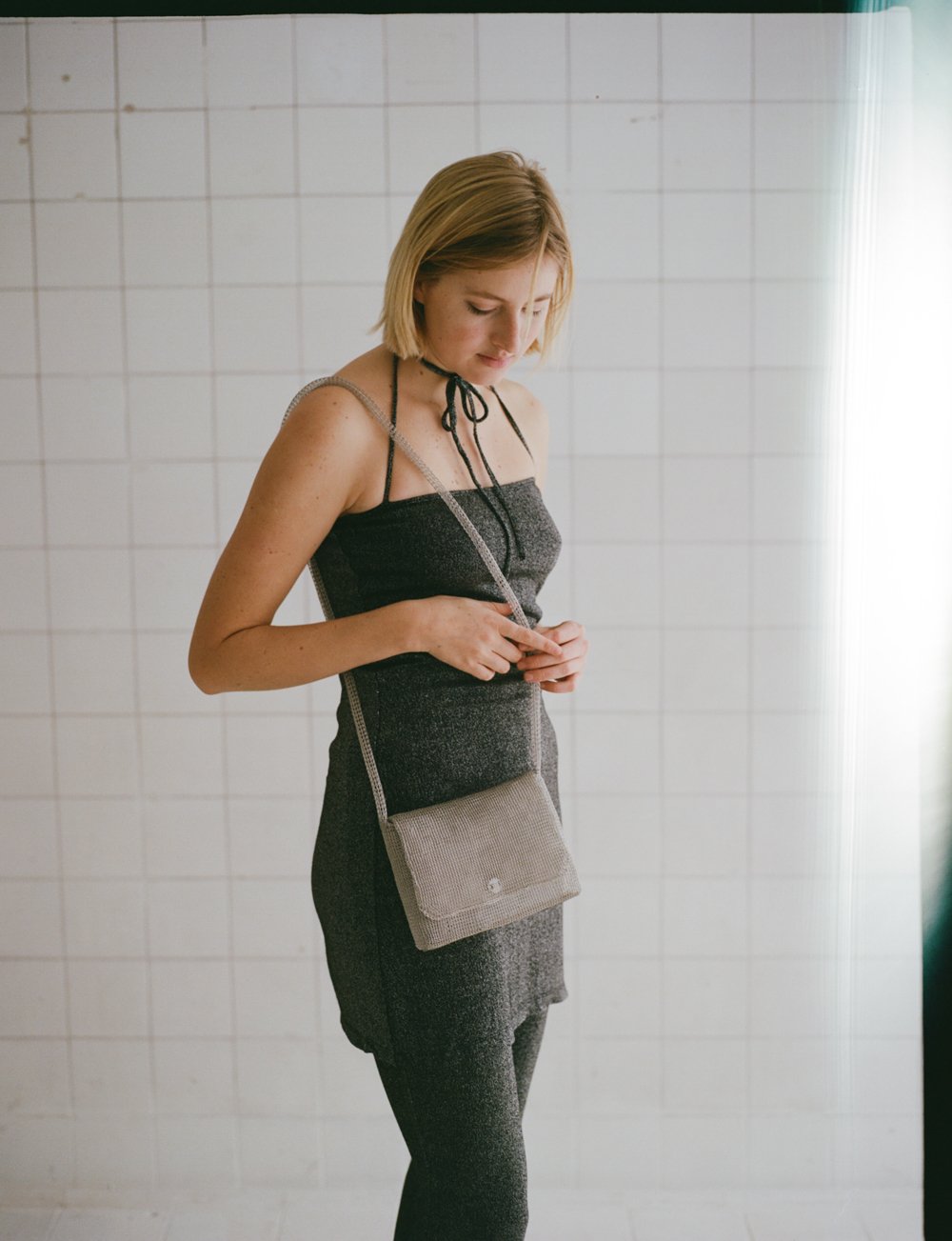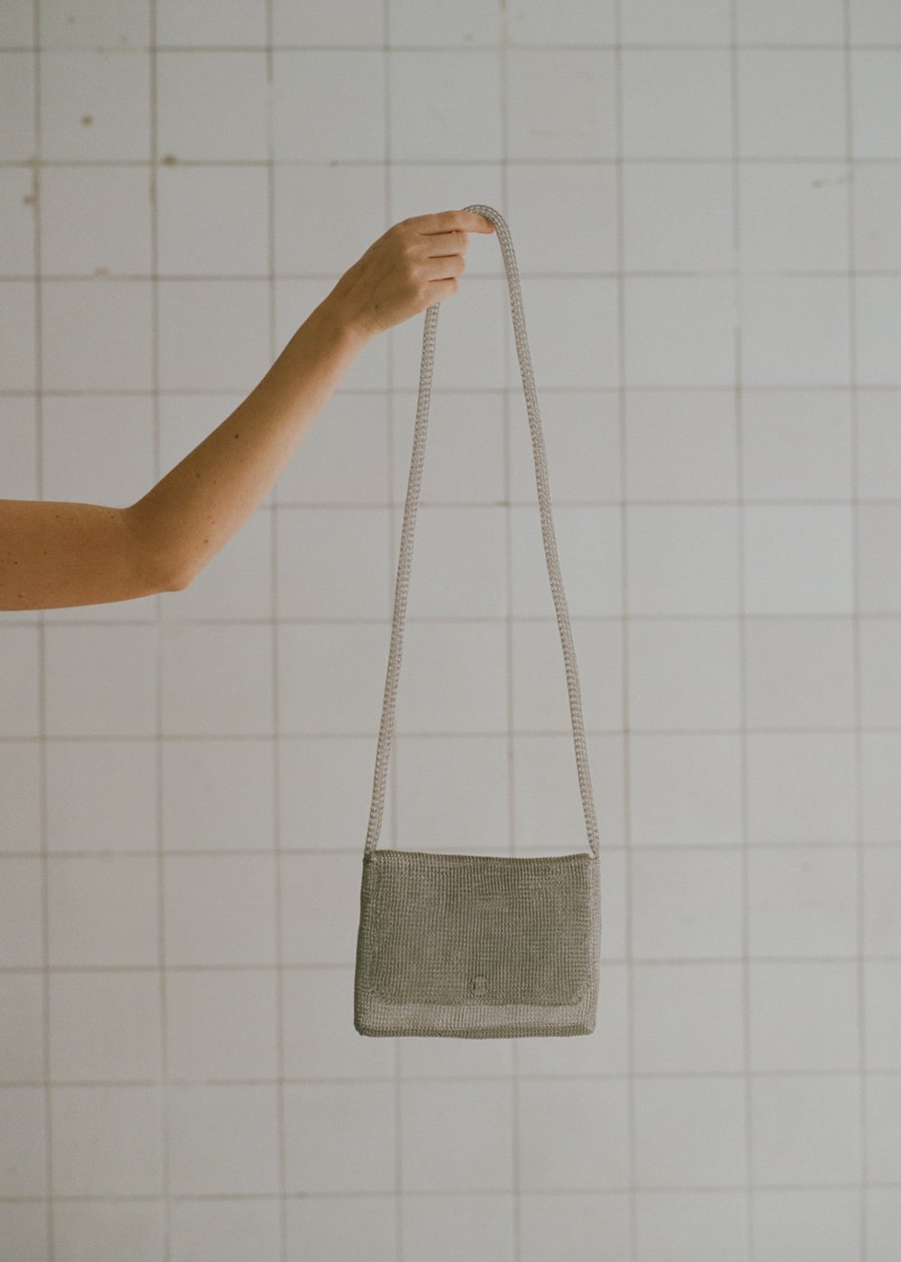 Handmade stainless steal chainmail bag with magnetic closure. Hand woven in Sumba, Indonesia.